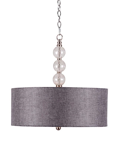 - Design details: 20in Diameter Gray Fabric Shade; 3-60 Watt Bulbs; 20in extender