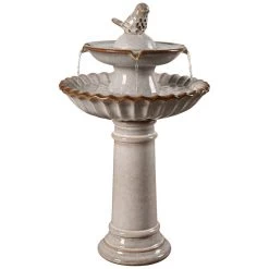 Serene 38″ High Ivory Ceramic 2-Tier LED Garden Patio Water Fountain