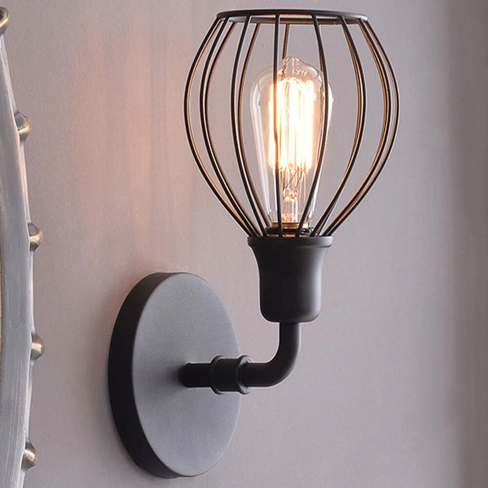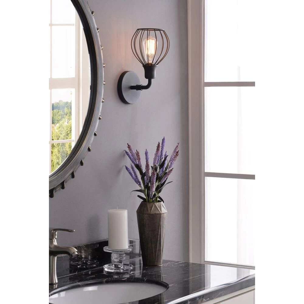 This edgy urban contemporary 1 light wall sconce is sure to bring plenty of bright lighting and effortless modern style to your industrial master bathroom, hallways, doorways, and more. A matte black finished wire frame shade give a modern industrial feel, while the open profile allows your choice of bulb to freely shine – perfect for use with vintage-style Edison bulbs or other designer bulbs. Use this stylish sconce as a light above your nightstand or end table for a space-saving light source that fills the space with bright lighting and urban style.