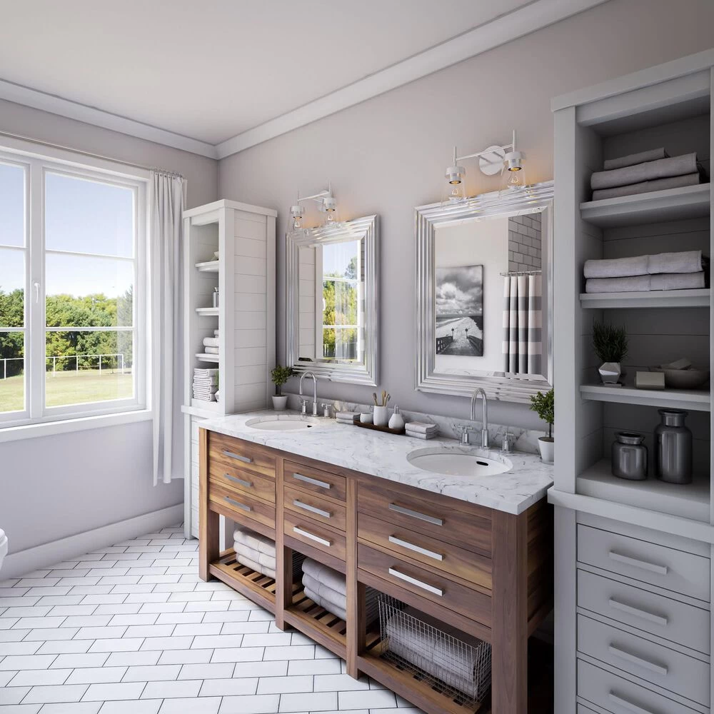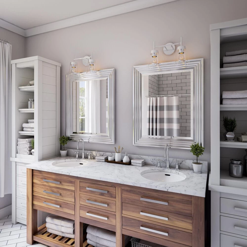 - Mid Century Modern 2 light bathroom vanity