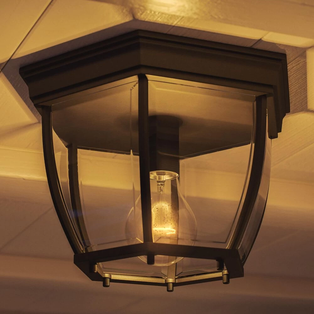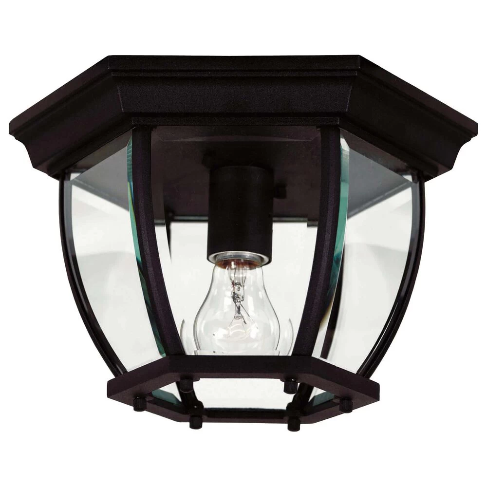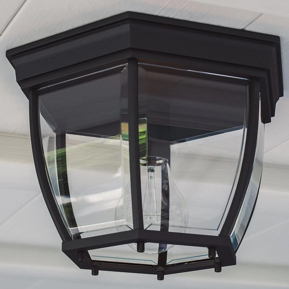This low-profile light brings a huge dose of style to your small spaces. This flush mount can be used outdoors to bring your classy sense of style to your sunrooms, patios, garages, sheds, porches and more. Ultra-clear glass allows light to freely pass through to flood your home with bright illumination – perfect for small apartments, condos or town homes with low ceilings. The classic black finish lends well to a wide variety of styles, from traditional to industrial, ensuring that your carefully curated selection of accessories always match your lighting. Pair with an Edison bulb or other designer bulb for even more vintage charm.
