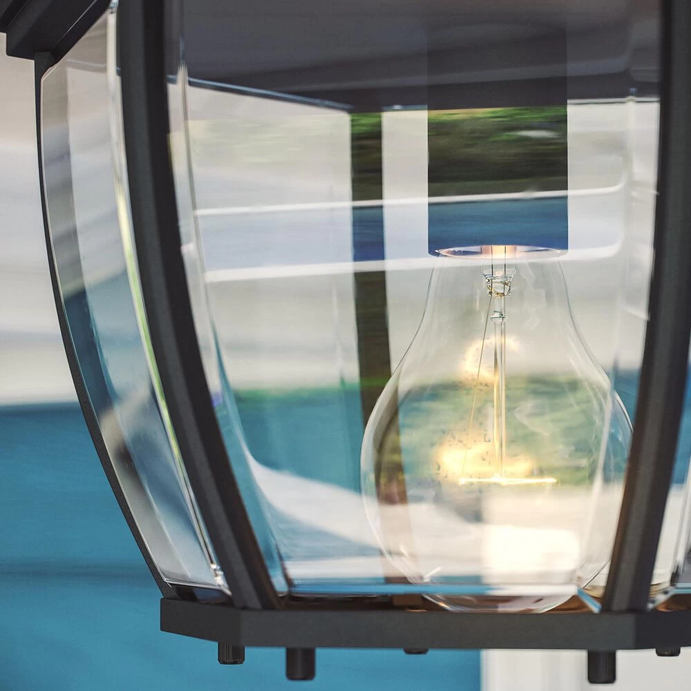 - Crystal clear glass shade provides bright illumination and protects the bulb from moisture