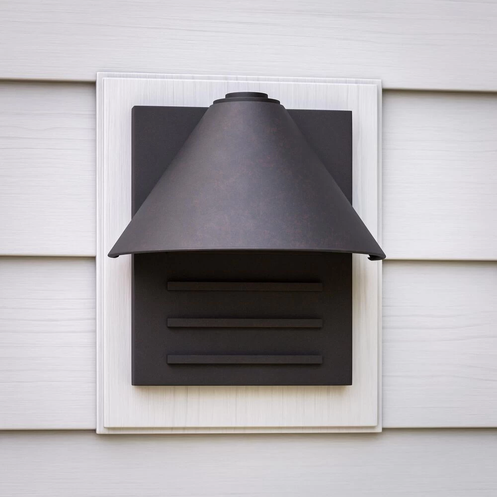Illuminate the dark nights with the glimmering light of this sophisticated 1 light small outdoor wall sconce. The dark copper finish catches the warm light escaping from the metal shade for a welcoming accent beside your front door. This sconce can be used both indoors and outdoors – perfect for barn doors, entryways, hallways or doorways in your modern farmhouse home.