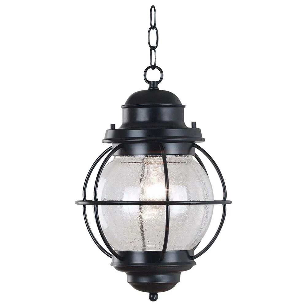 Welcome your guests home with the warm light gently emitting from this coastal hanging lantern. Inspired by the vintage lanterns sailors once used, this lantern casts a warm glow in your patio with its clear seeded glass shade and nautical appearance. Although its design looks as if it was plucked from an old ship, this hanging light also complements vintage industrial themes when used with an Edison bulb for vintage flair. Suspend this hanging lantern over your outdoor living room furniture in your patio to showcase your antique coastal sense of style.
