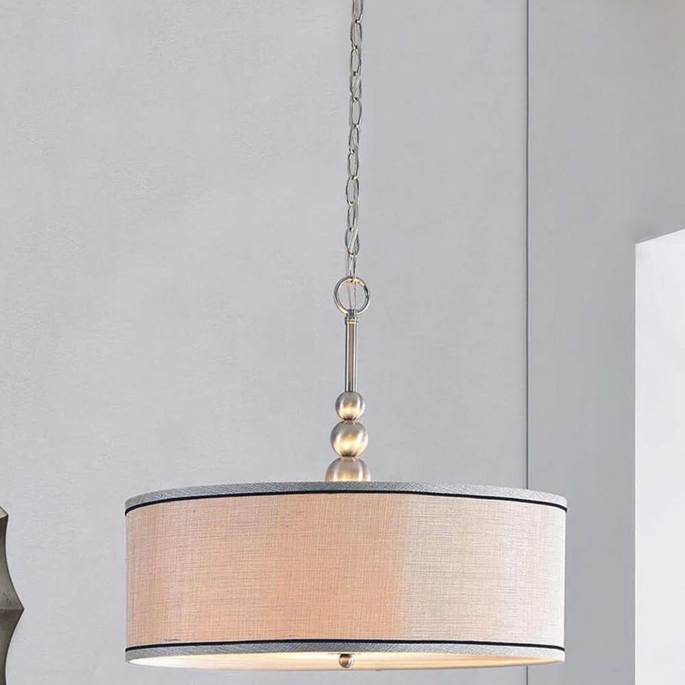 - FEATURES: 22 INCH DIAMETER SILVER METALLIC FABRIC SHADE