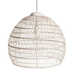 With a woven wavy pattern, this natural modern 1 light pendant packs a huge punch of casual boho style. Naturally finished rattan is woven in a soft, curved wavy open weave pattern to showcase your choice of bulb within. Perfect for your vaulted or sloped ceiling dining rooms, entryways, or living rooms, this pendant expertly coordinates with your tropical coastal decor and casual boho textures.