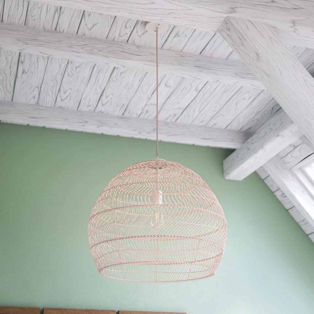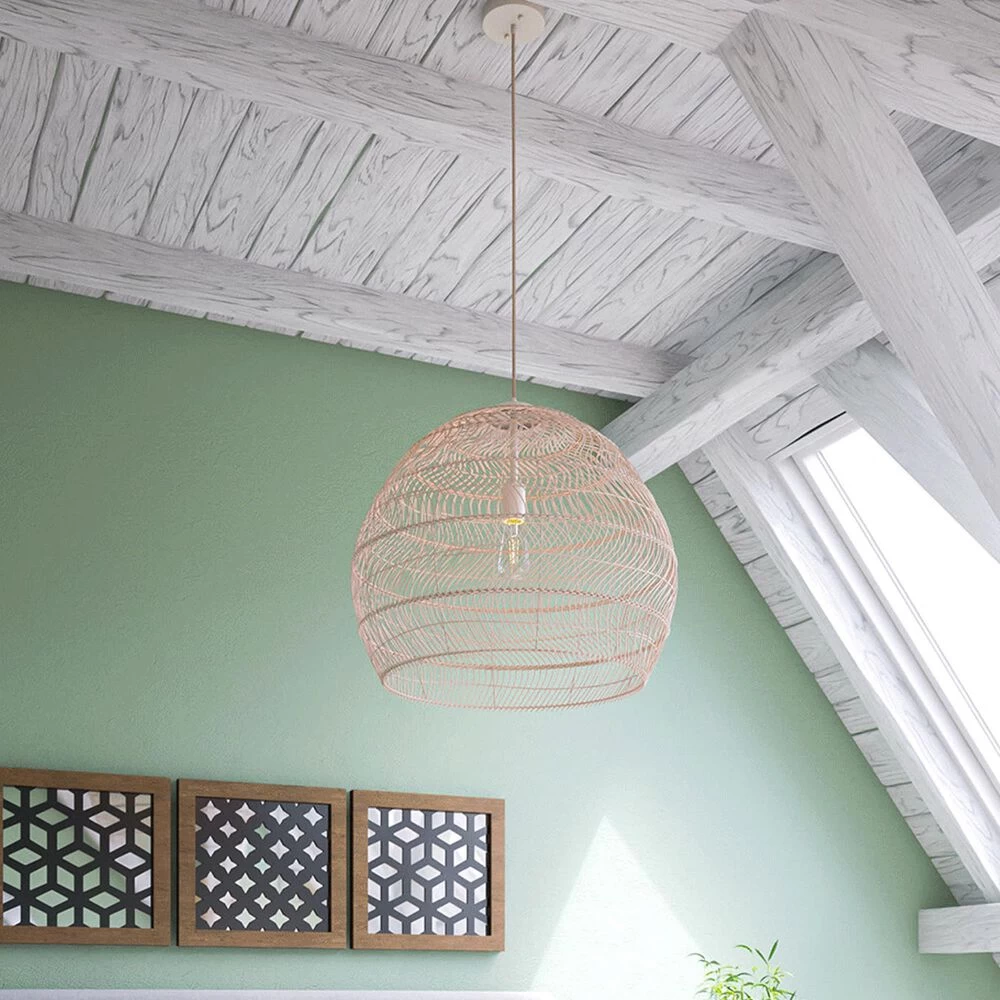 - Open weave boho pendant with woven natural rattan shade