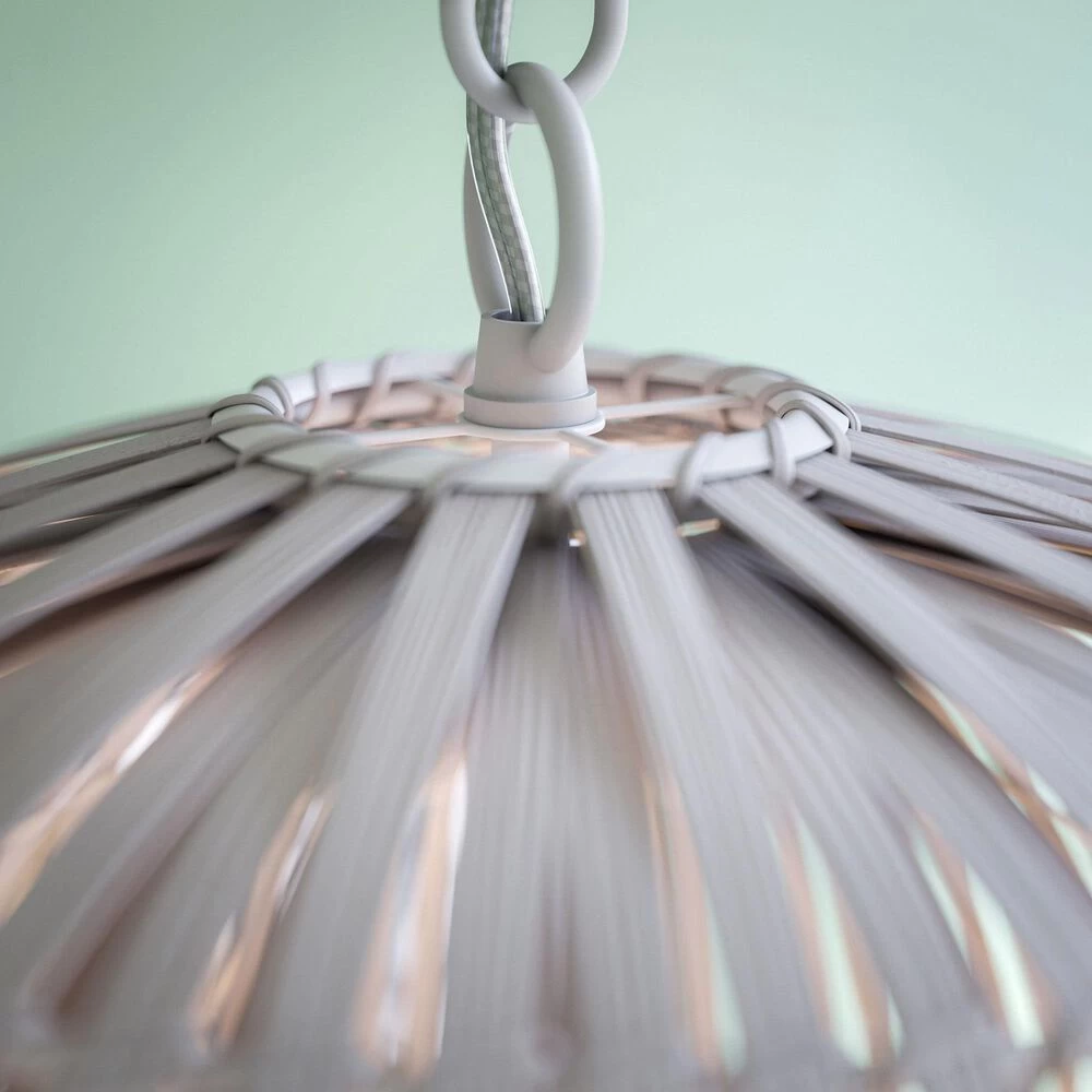 Rattan has never looked so good – this stylish rattan dome pendant features a basket-like look in a sleek white finish. The rattan dome shade creates a bright, warm downlit glow – perfect for your boho living spaces. Vaulted and sloped ceiling compatible, place this rattan dome pendant in your natural, tropical, or contemporary dining room or entryway.