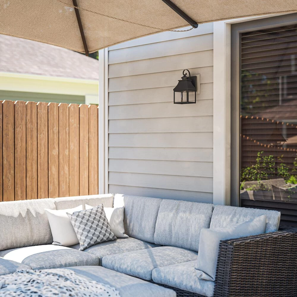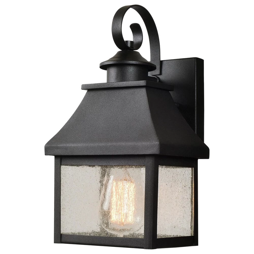 Theres nothing like that sense of nostalgia when pulling up to your parents driveway after a long day of travel and seeing the bright light coming from the front porch welcoming you home. The bright light of this classic wall lantern cuts through rain, wind and snow to give a warm, atmospheric glow to your entryway. The stylish sandy black powder coated steel has subtle hints of gold highlights that catch the light emitting from the crystal-clear seeded glass panels. Perfect for use outdoors flanking garages, doorways, sheds or simply illuminating outdoor living spaces, this wall lantern will bring plenty of classic charm to your traditional home. For even more vintage charm, use a compatible Edison bulb or other designer bulb.