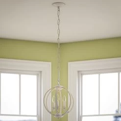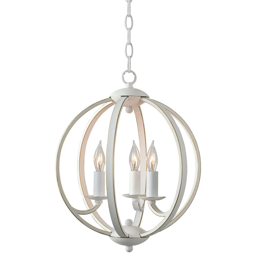 No room for the large, ornately decorated chandelier of your dreams? This stylish cottage chic chandelier may have a modest 13 inch diameter, but it packs a huge punch of style with its lightly weathered white finish and glimmering gold highlights that sparkle and glimmer in the warm light of the exposed candelabra bulbs. Perfect for both tall, vaulted ceilings and small space dining rooms, this chandelier provides plenty of room-filling illumination and chic rustic charm to boot. Suspend your new chandelier in your farmhouse dining room or your grand foyer for a heaping dose of country charm.
