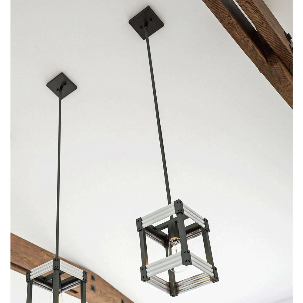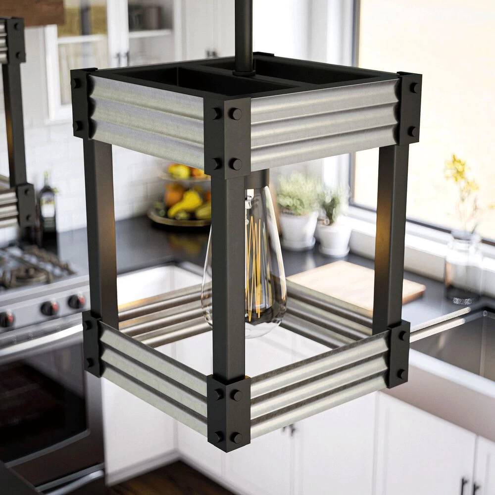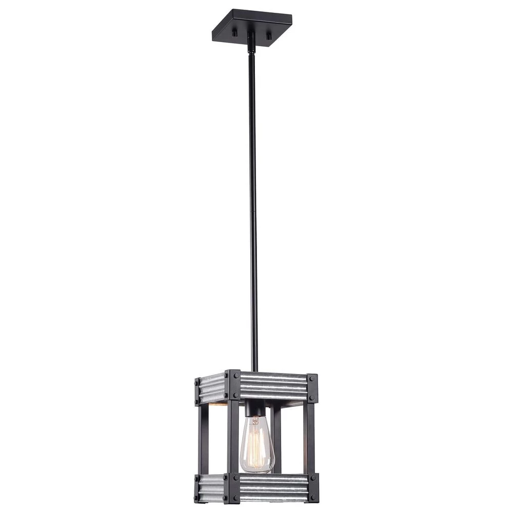 All the charm of modern farmhouse and the raw, unrefined fashion of urban industrial design combine to form this 1 light mini pendant that packs a huge punch of style. The matte black finish contrasts with the galvanized tin accents for a look thats simultaneously rustic and contemporary. Use the included antique Edison bulb to cast a warm, atmospheric glow over your vaulted entryways, sloped ceiling dining rooms, or mixed material living room.