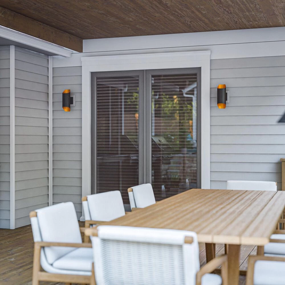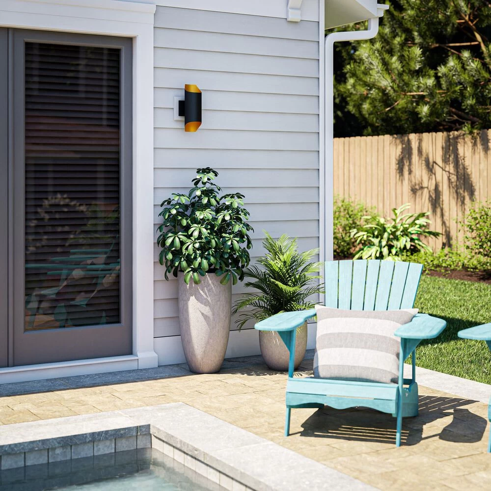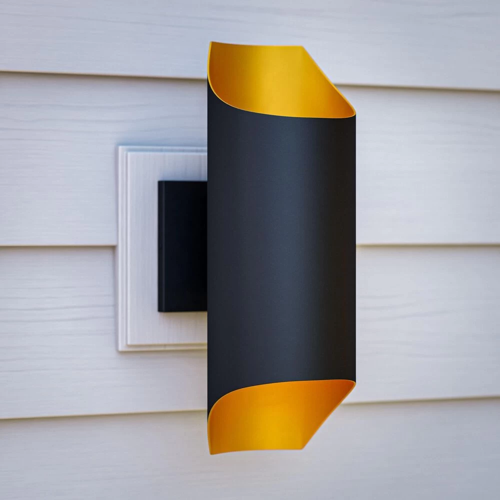 Suave and smooth with curved metal shades and a luxe two tone finish, this LED lantern has a warm, centralized glow and nostalgic style to boot. Matte black finish is complemented with a smooth gold interior, creating brilliant lighting with the integrated LEDs. Hardwired fixture has everything you need in the box for an easy install – perfect for both indoor and outdoor spaces.