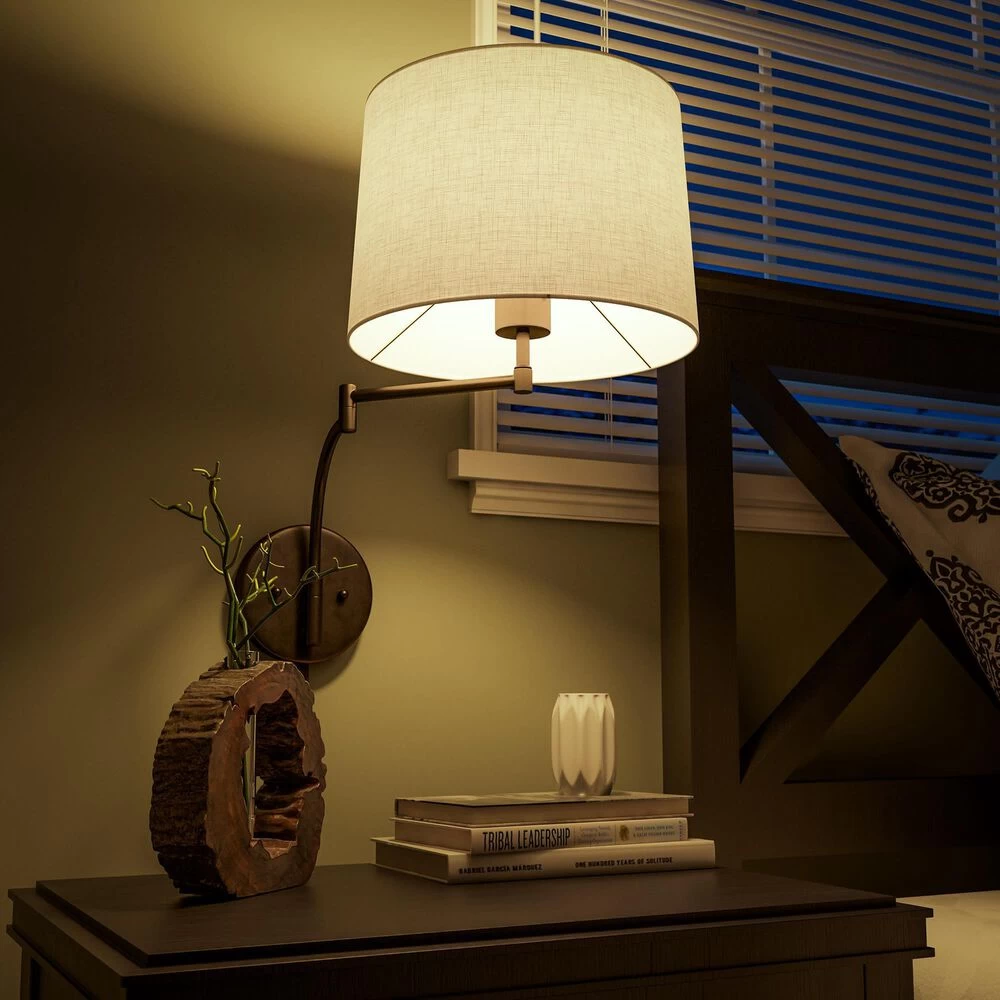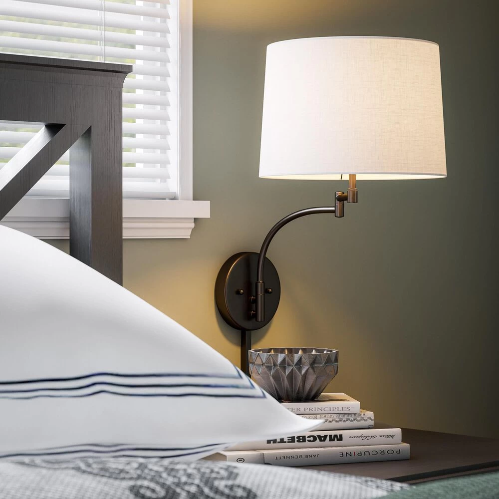 Whether youre catching up on late night reading or simply lounging the day away in bed, this swing arm lamp always provides just the right amount of light for any time of day. Swing the lamp over to direct light to your latest novel, or swing it against the wall to neatly store it away. Since this lamp is wall-mounted, you have plenty of space on your nightstands for knick knacks, books, or a midnight snack.