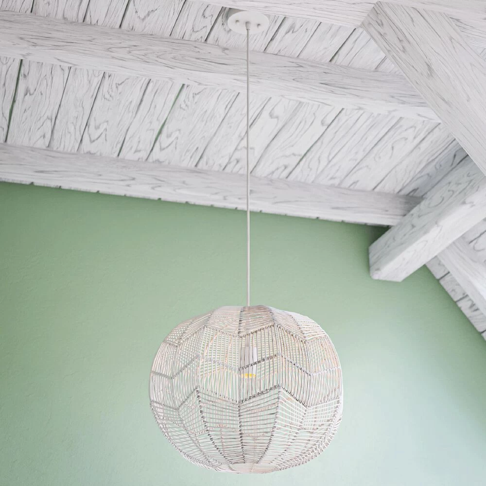 Bold, boho and beautiful, this 1 light pendant features a white woven rattan and a bright, atmospheric glow from your choice of vintage-style Edison bulb. Perfect for those looking to bridge the gap between light and airy minimalist style and casual natural modern looks, this pendant serves as a dazzling centerpiece above kitchen islands, dining rooms, and living spaces.