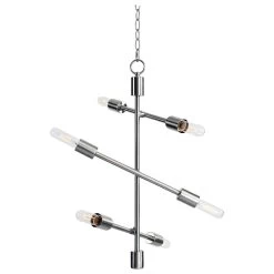 For an accent that will turn heads with sleek, contemporary style, look no further than this chandelier. Edison bulbs are at the ends of three arms that can be turned and repositioned to suite your personal style for a modern, trendy take on interior lighting. Suspend from your vaulted ceiling entryway to wow your guests with the sleek brushed steel finish. Illuminate your glass dining room table with the warm atmospheric glow of the vintage Edison bulbs.