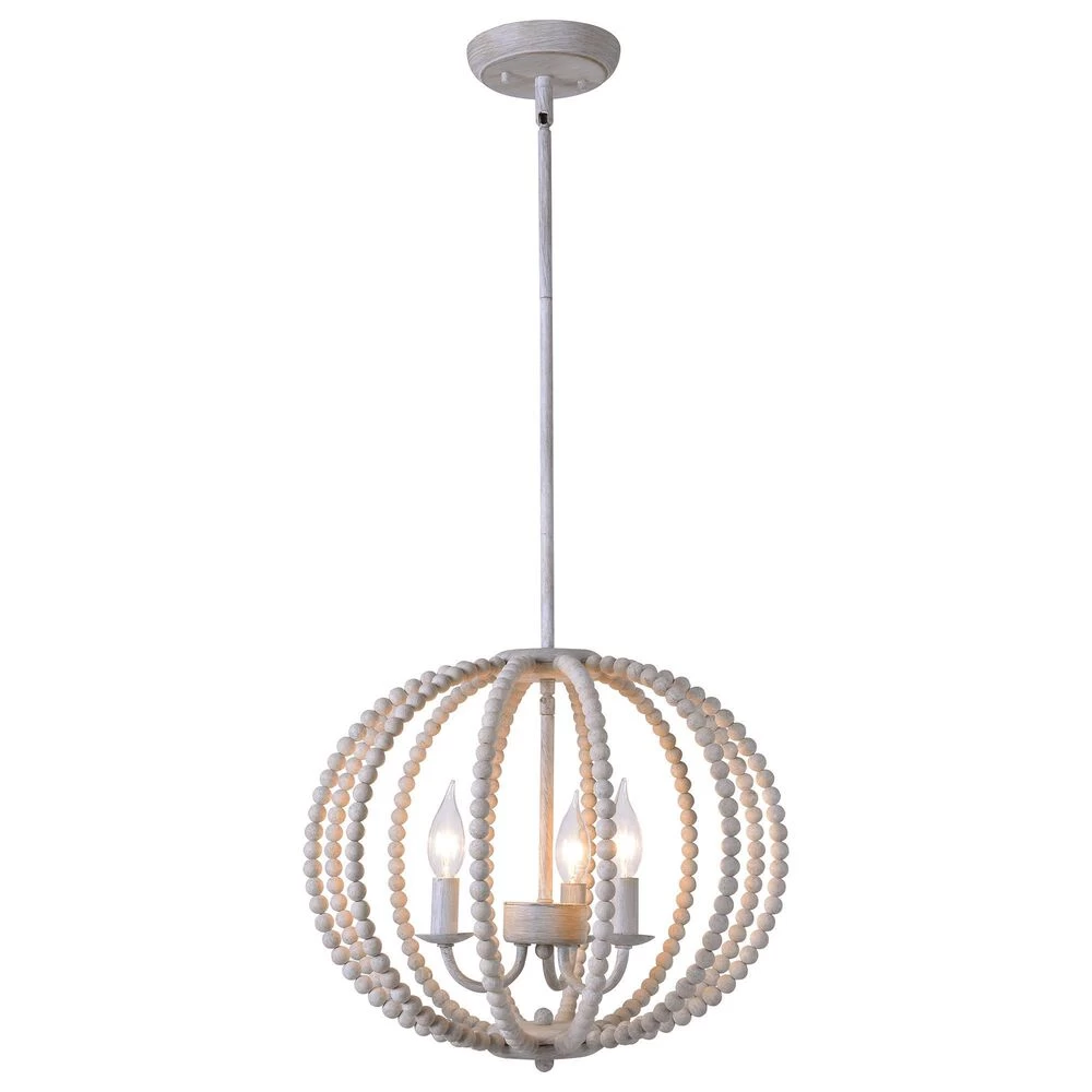Strands of lightly distressed gray wooden beads enclose a bright, warm light for a comfortably casual boho accent in your eclectic entryway. Whether your look is casual coastal or natural modern, the gray wood bead detailing adds a soft, distressed look to your home decor. This 3 light chandelier is both vaulted and sloped ceiling compatible, allowing you to add soft organic charm to your entryways, foyers, living rooms, kitchens, or dining rooms. To create a warm, vintage glow, use compatible LED Edison candelabra bulbs.