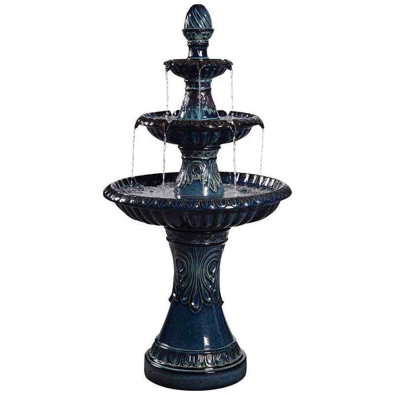 Kiera 46 1/2″ High Blue Ceramic Traditional Garden Fountain