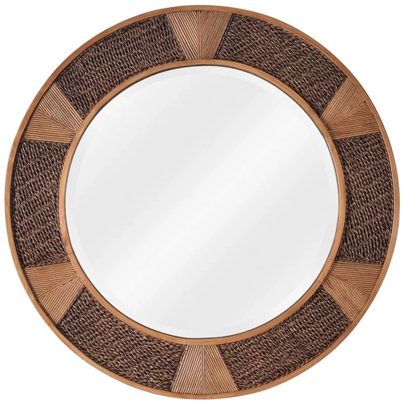 Lagoon Painted Wood W/ Natural Rattan 34″ Round Wall Mirror