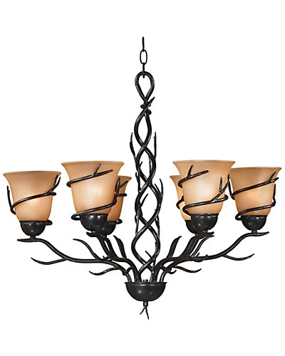 - Design details: bronze finish metal base, amber iridescent glass shades, requires 6-100 Watt (M) Bulbs (not included)